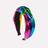Colorful metallic headband with a unique design on a white background. Knotted pink headband for women with curly hair"